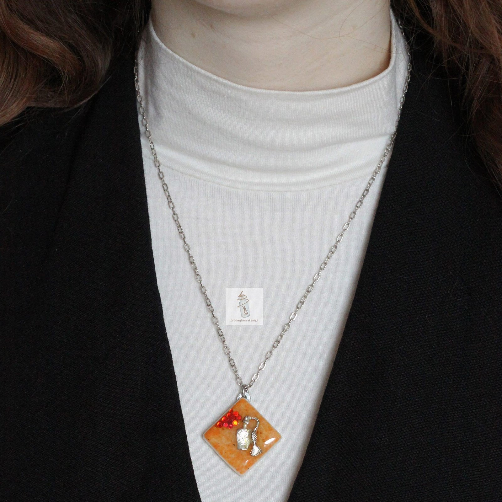 Il est recouvert de résine transparente sur le devant, blanche à l'arrière - Dimensions et poids : La chaine mesure environ 46 cm. Je peut vous la rallonger ou raccourcir sur demande. L’ensemble pèse environ 11,85 grammes.