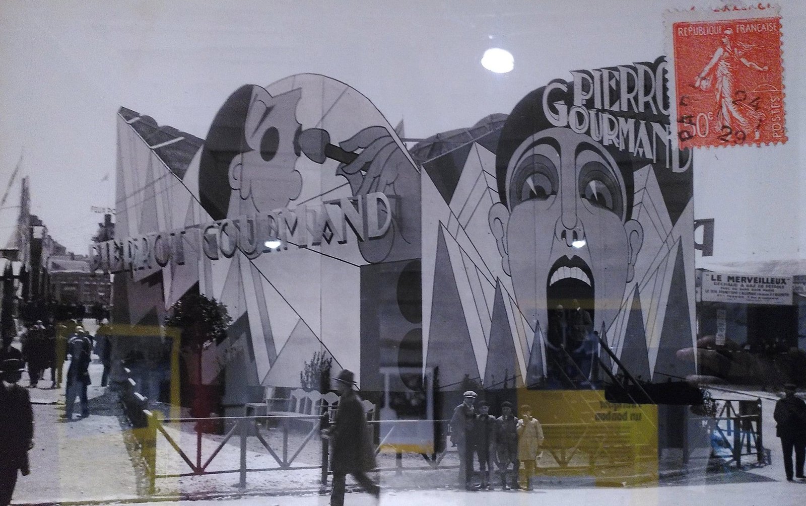 En 1924 pour la foire de Paris, un Pierrot aux formes géométriques très Art Déco orne le stand de la confiserie.