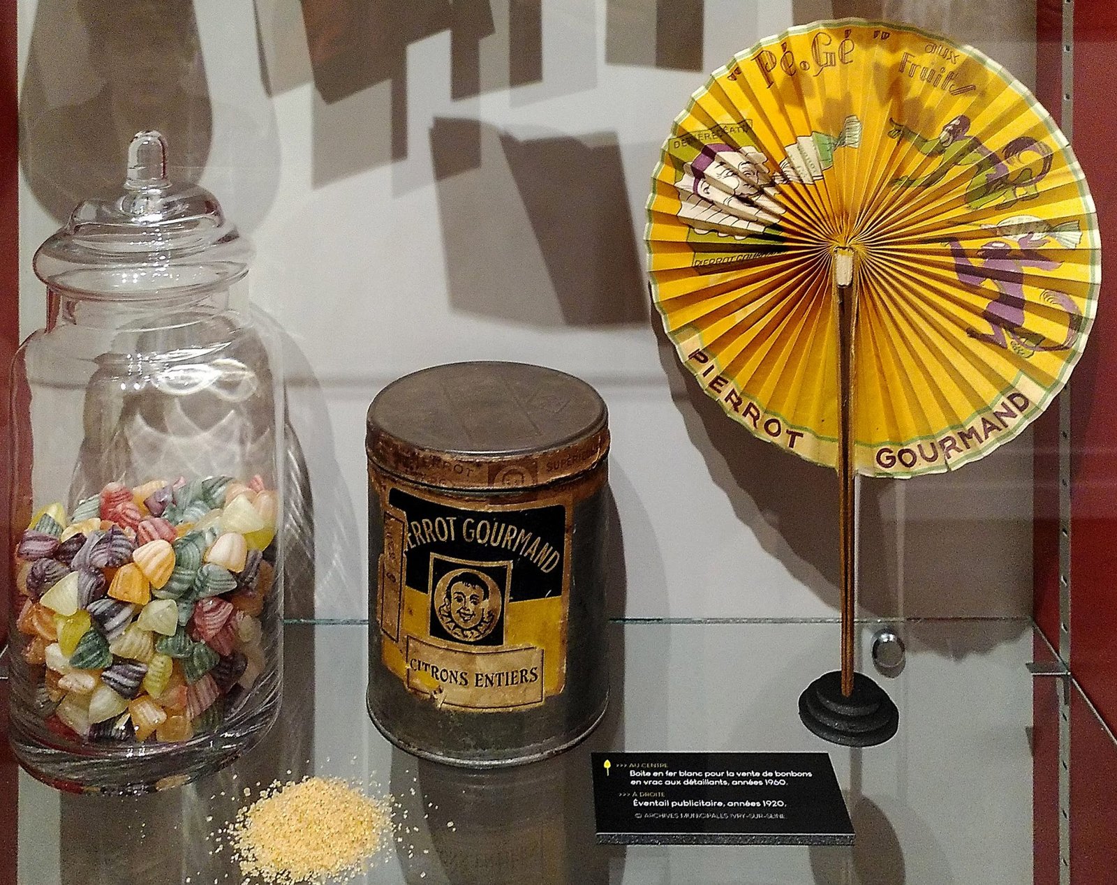 Au début du XXème siècle, Pierrot Gourmand commercialise ses bonbons dans des bocaux en verre (incassable à partir de 1910) fermés par un couvercle en métal poli.