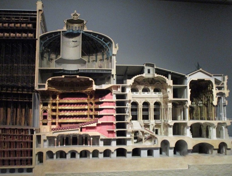 Garnier a dessiné un plan parfaitement clair de ce qui sera le futur Opéra. Il se découpe en trois parties : l’entrée avec son grand escalier, la salle de spectacle et la scène, et le foyer de la danse et le bâtiment de l’administration. Le magistral et théâtral escalier fait parti des éléments qui ont séduit le jury du concours. Et les abonnés, dont Degas faisait parti, avaient à chaque fois cette surprise visuelle quand ils arrivaient à l’Opéra. La salle avait une très bonne acoustique et les extrémités de celle-ci étaient moins resserrés que l’ancien Opéra de la rue Le Peletier.
