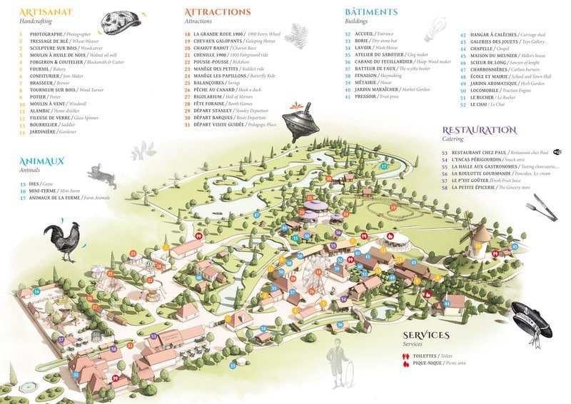 Le Parc le Bournat est une reconstitution de village 1900 avec des attractions. Il y a des artisans qui travaillent et explique leur métier, une fête foraine avec des activités de ces années et des manèges d’époque, des animaux, une épicerie et des restaurants présentant les produits du terroir et des nocturnes l’été avec un concert tous les mercredis et un feu d’artifice tous les soirs! Ca donne bien envie