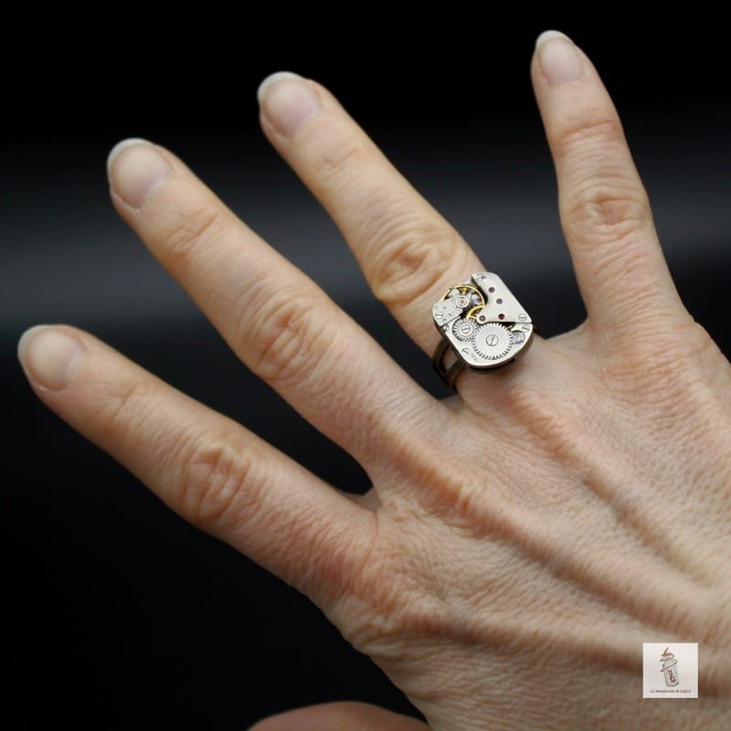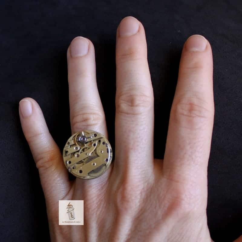 Cette bague Steampunk est conçue à partir d’un véritable mécanisme de montre, soigneusement recyclé pour lui offrir une seconde vie. Raffinée et mécanique, elle incarne l’élégance d’un bijou chargé d’histoire, tout en s’intégrant naturellement à un style moderne ou rétro-futuriste.
