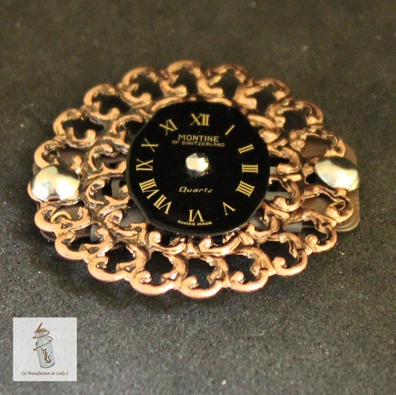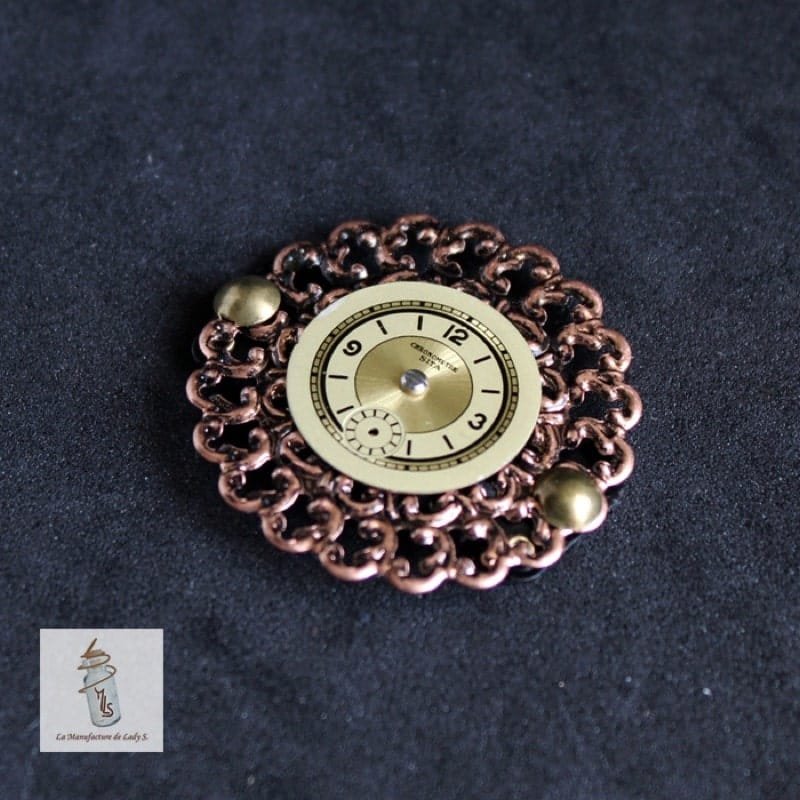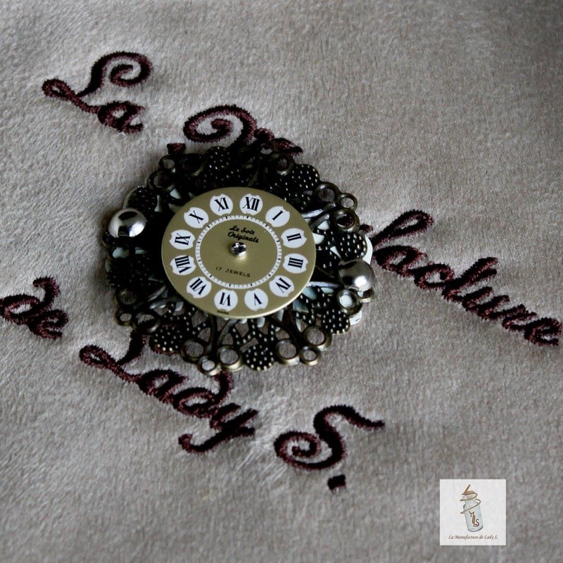 - L’estampe est décorée d’un élément de montre (cadran ou engrenage) ou d’une breloque me rappelant le Steampunk.