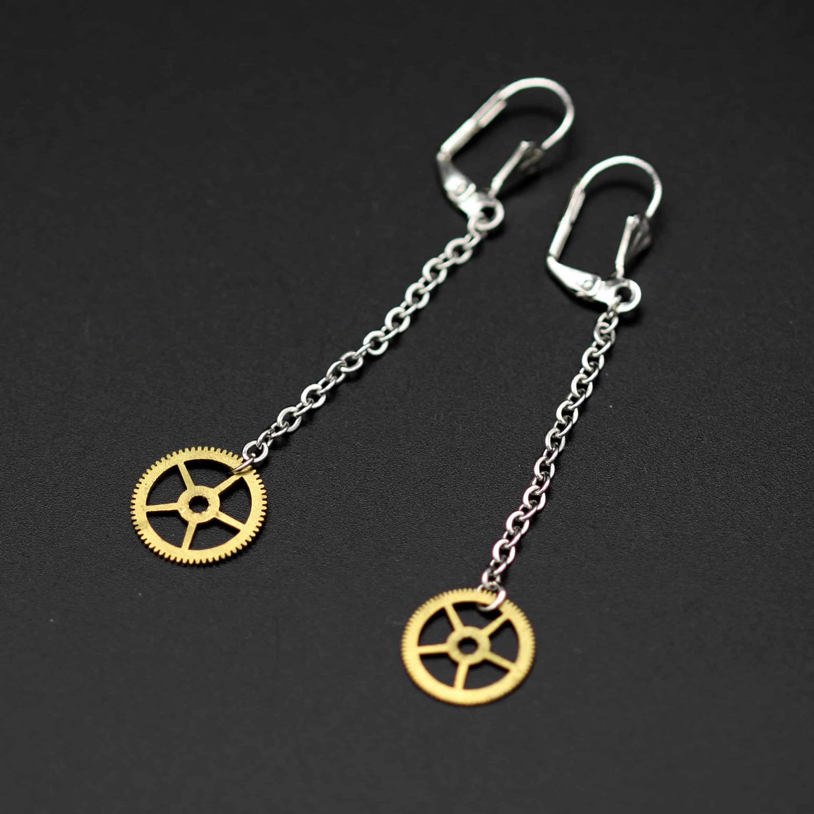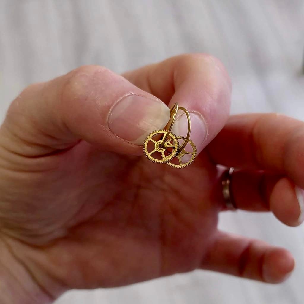 Ces boucles d'oreille engrenage n’apprécient pas l’humidité ni les produits cosmétiques.