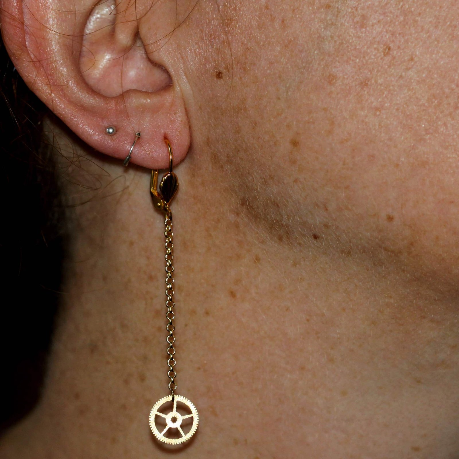 L'engrenage pend élégamment au bout de sa chaine ou d'une créole.