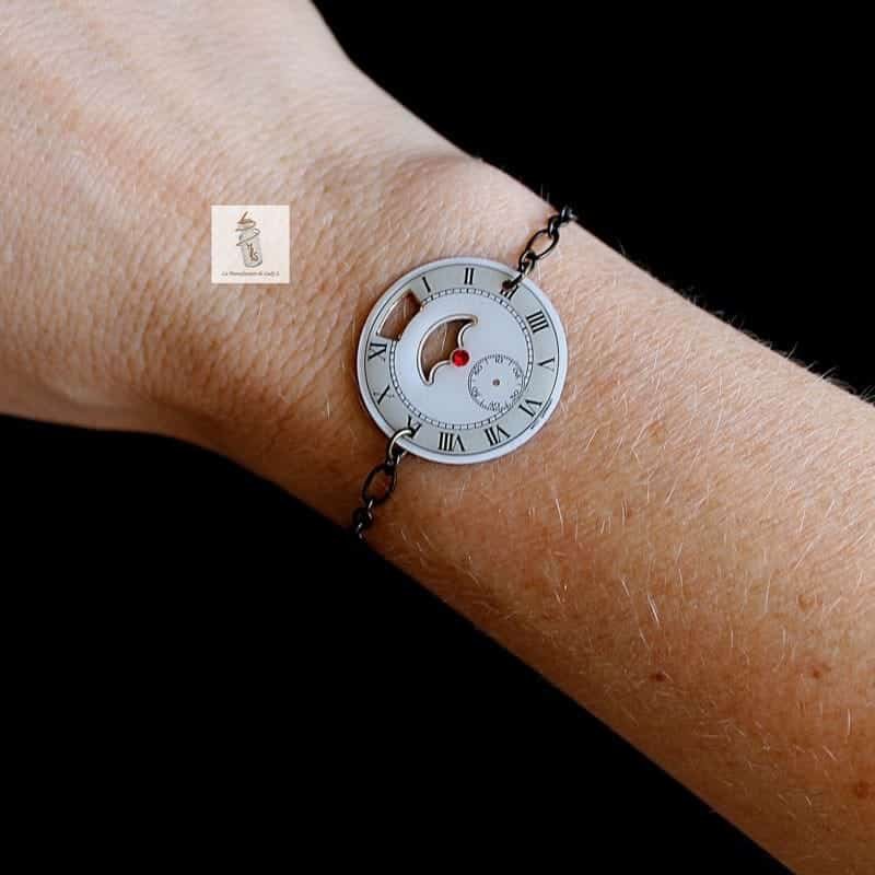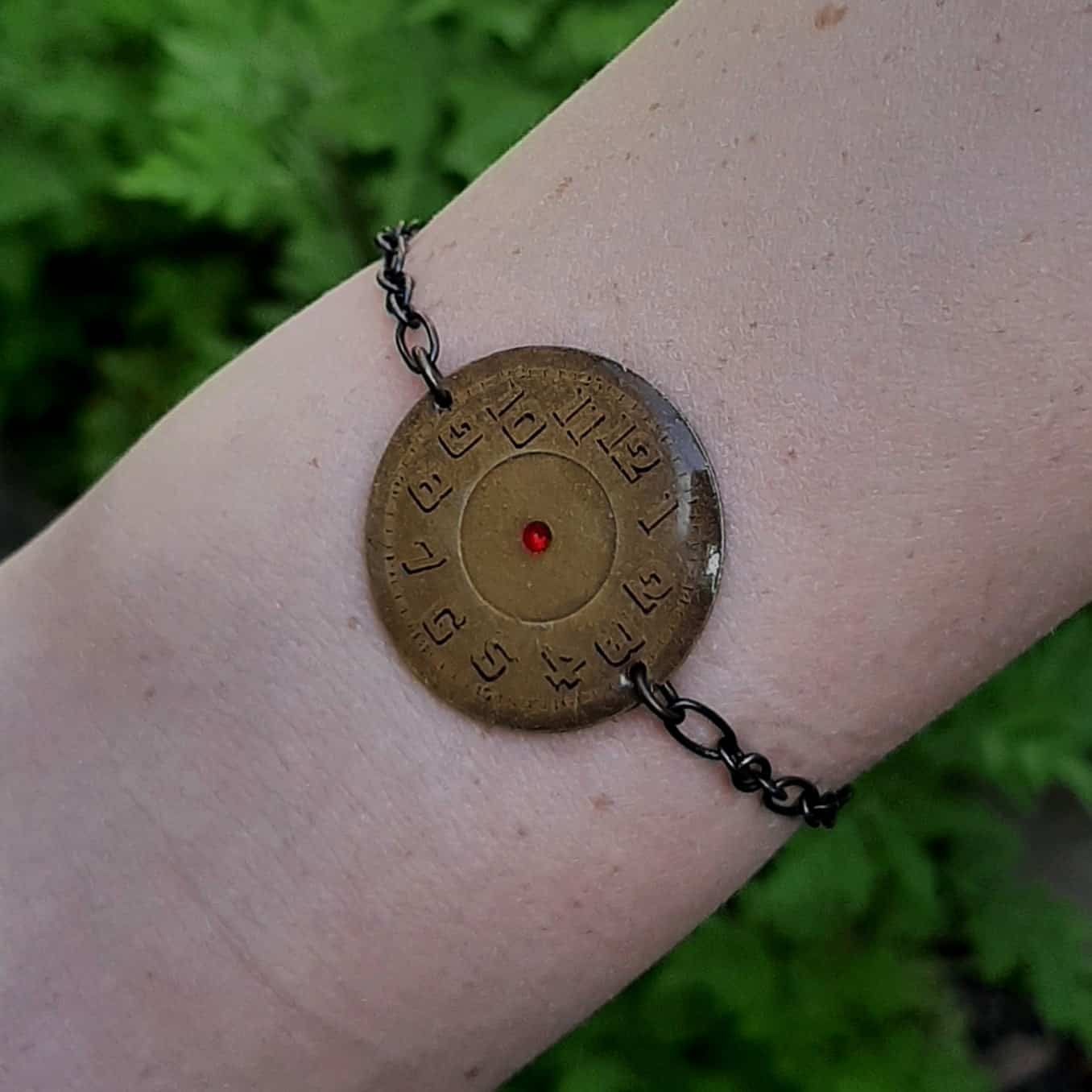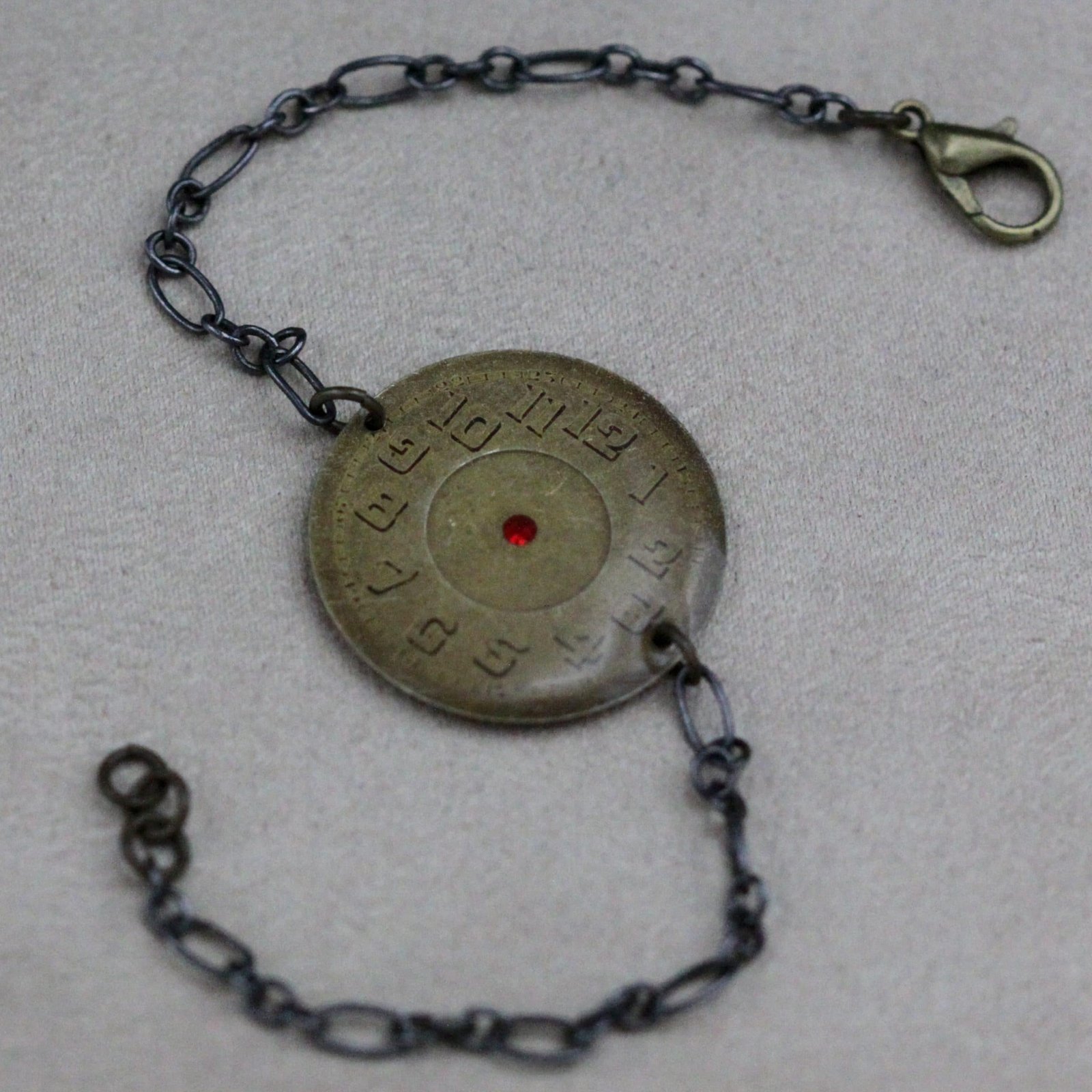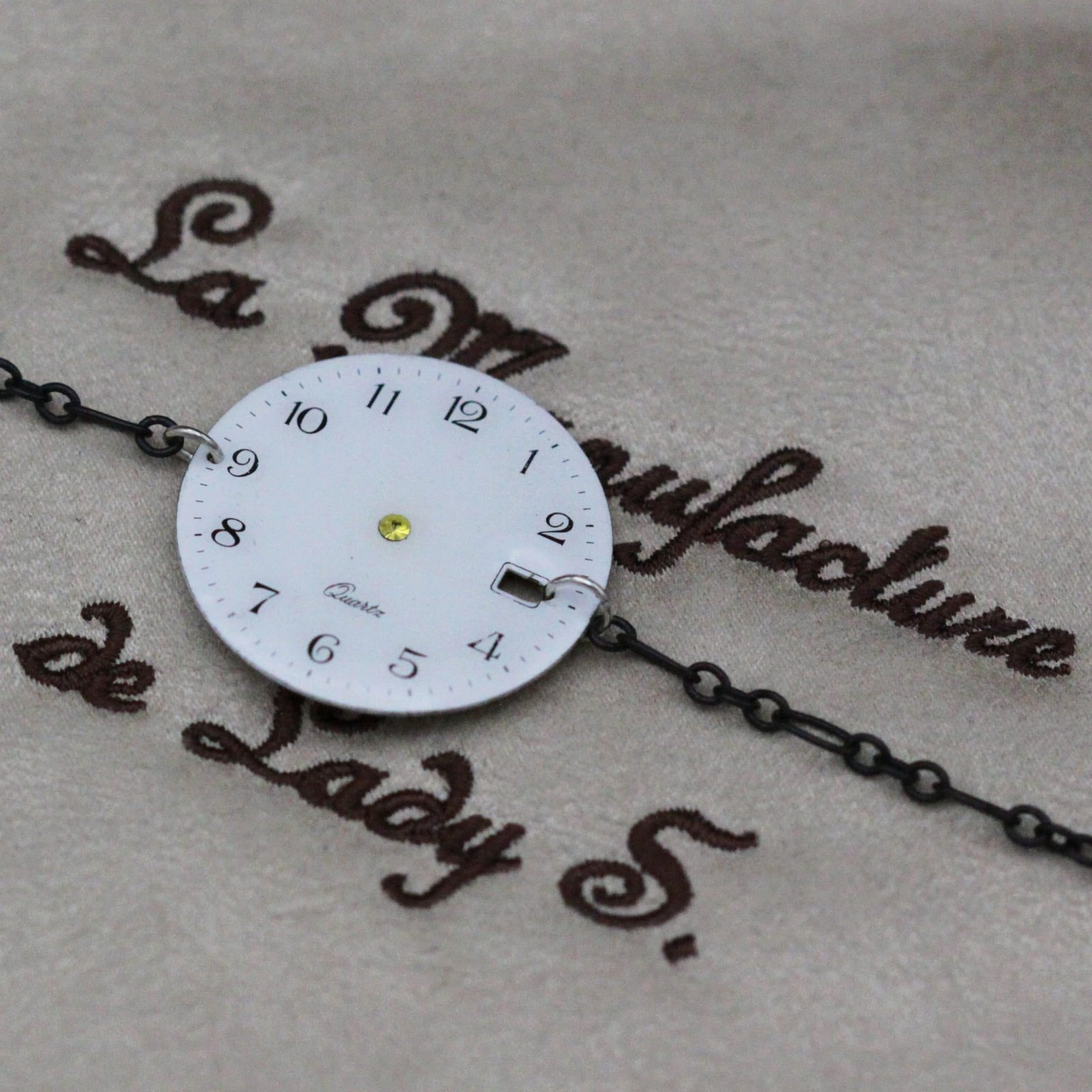 Bracelet steampunk unique, créé à partir d’un authentique cadran de montre.