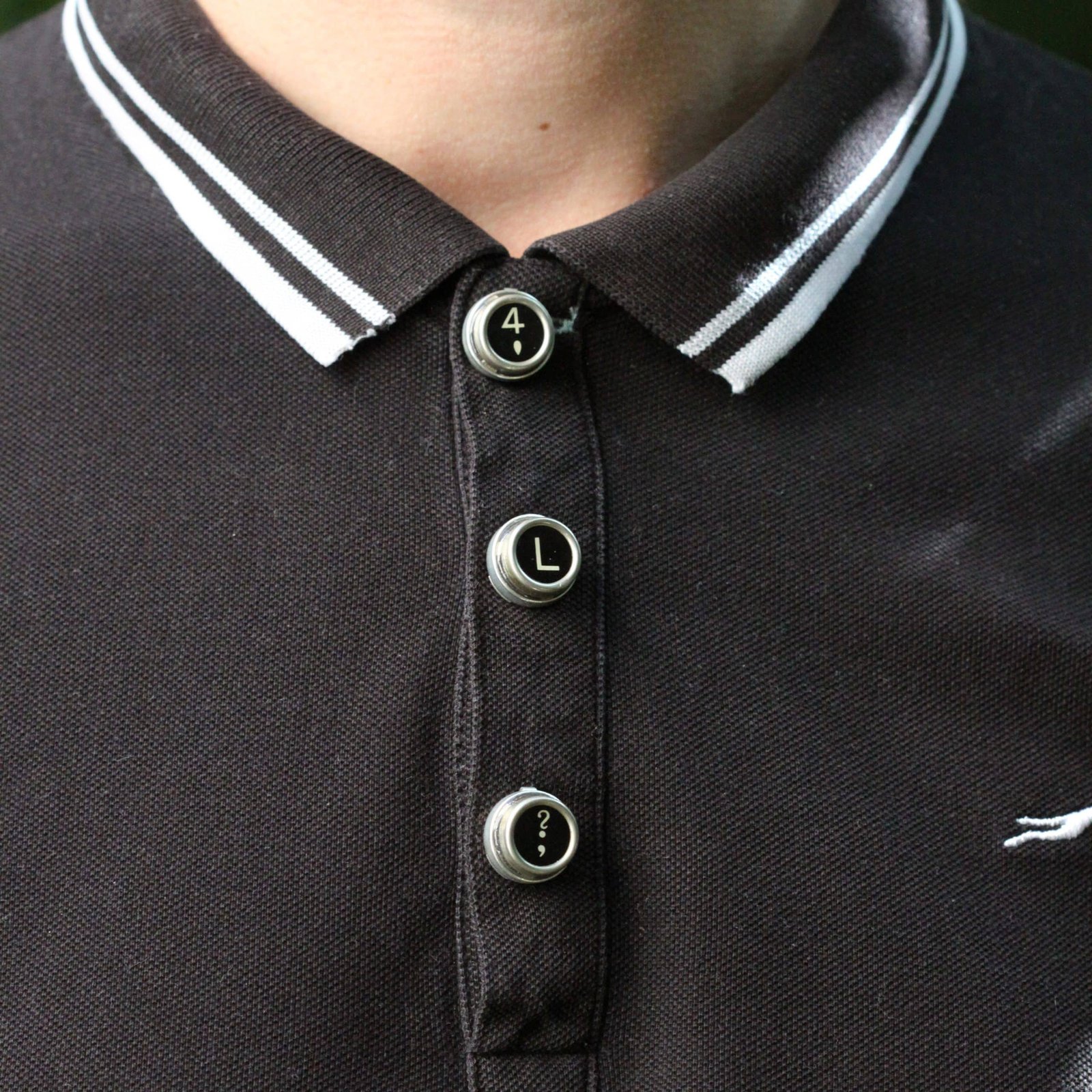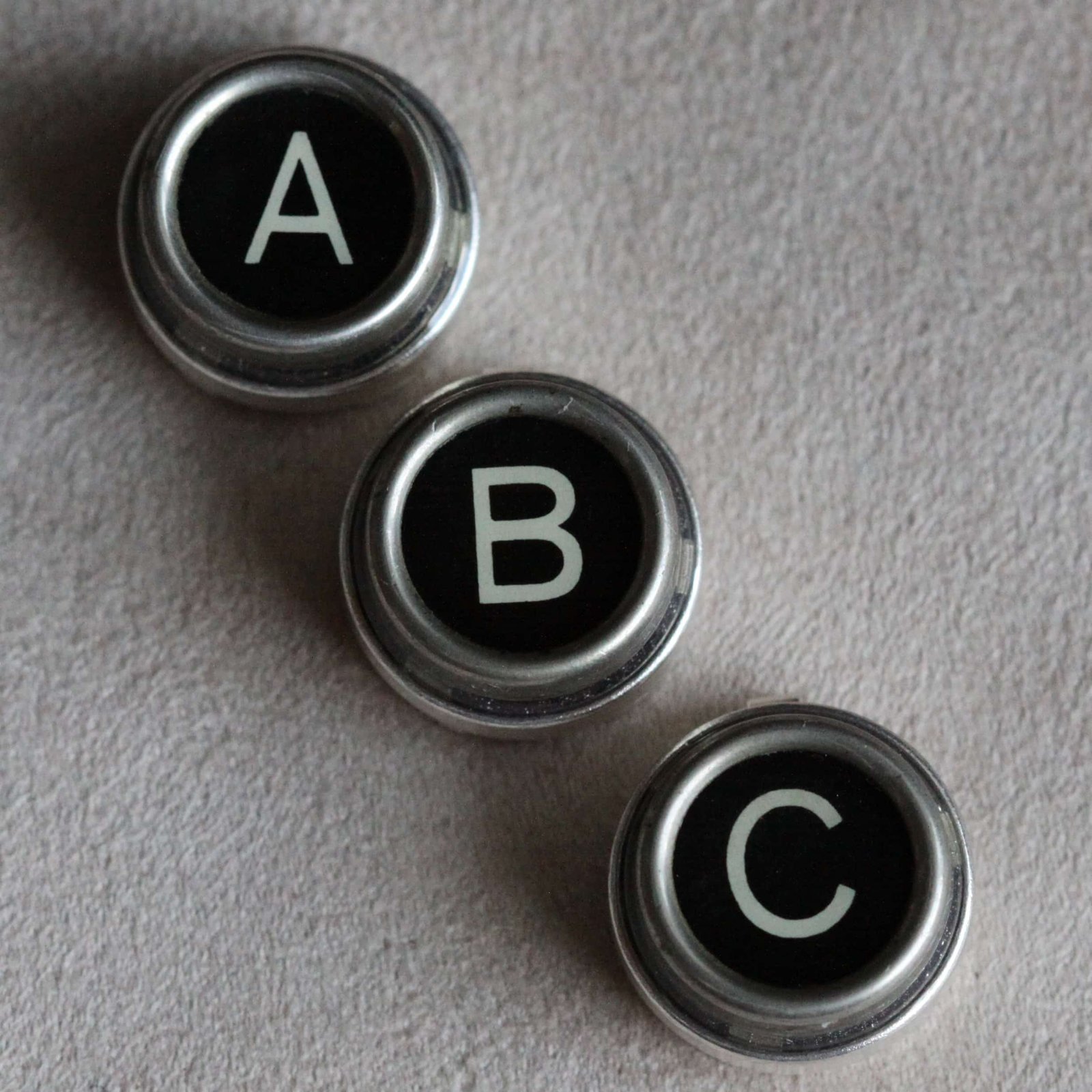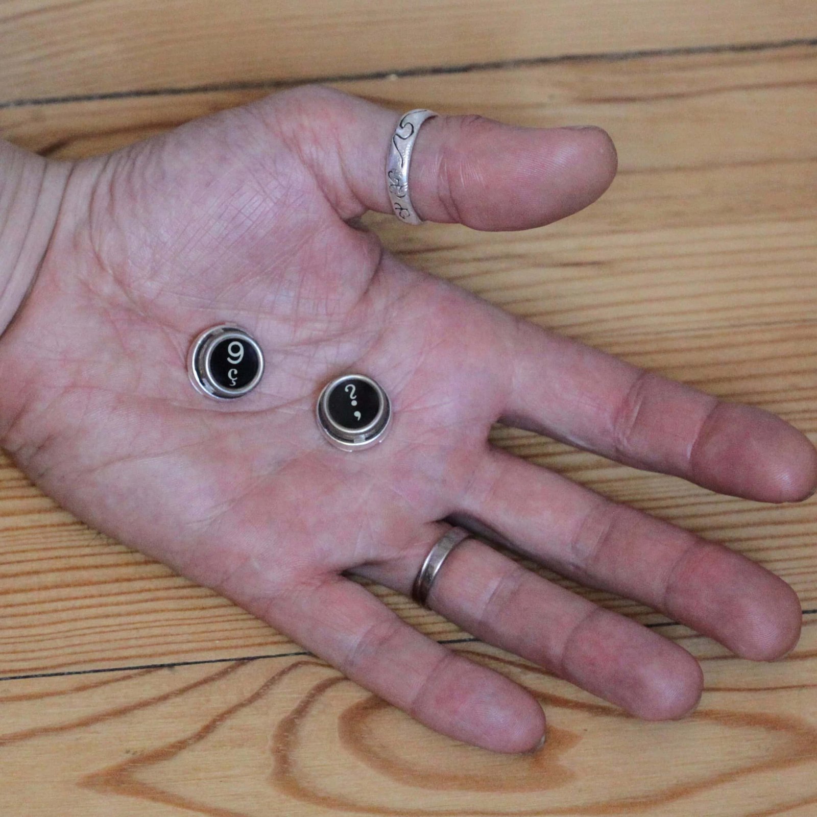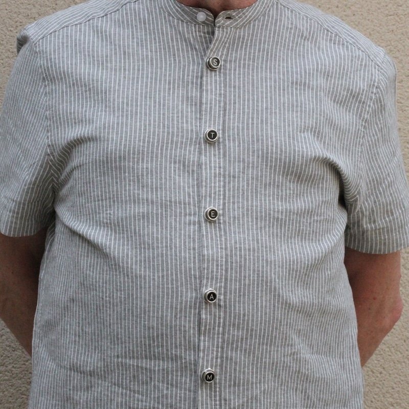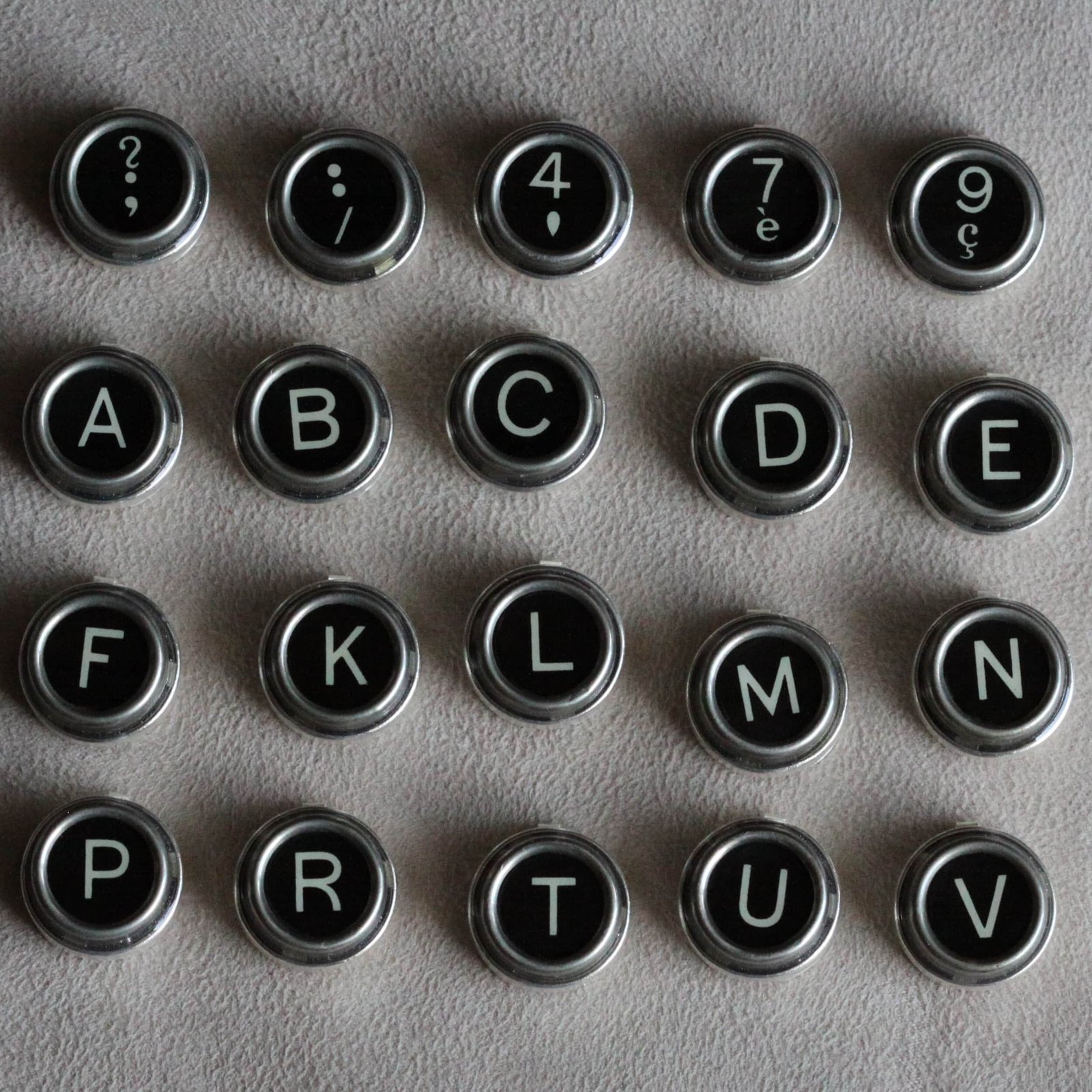 La collection Touche de Caractère est réalisée à partir d’authentiques touches de machine à écrire, pour les cache-boutons, j’ai utilisé une ROYAL hors d’usage.