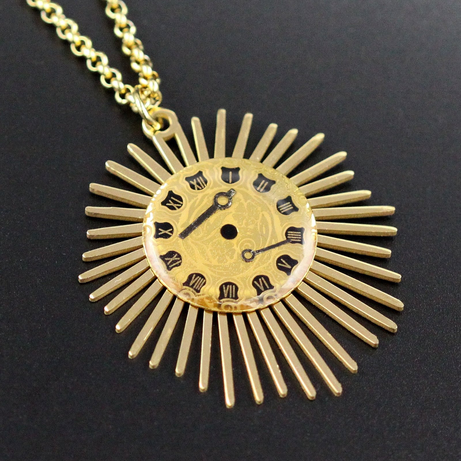 - Base : authentique cadran de montre poignet déposé sur un soleil en acier inoxydable doré.