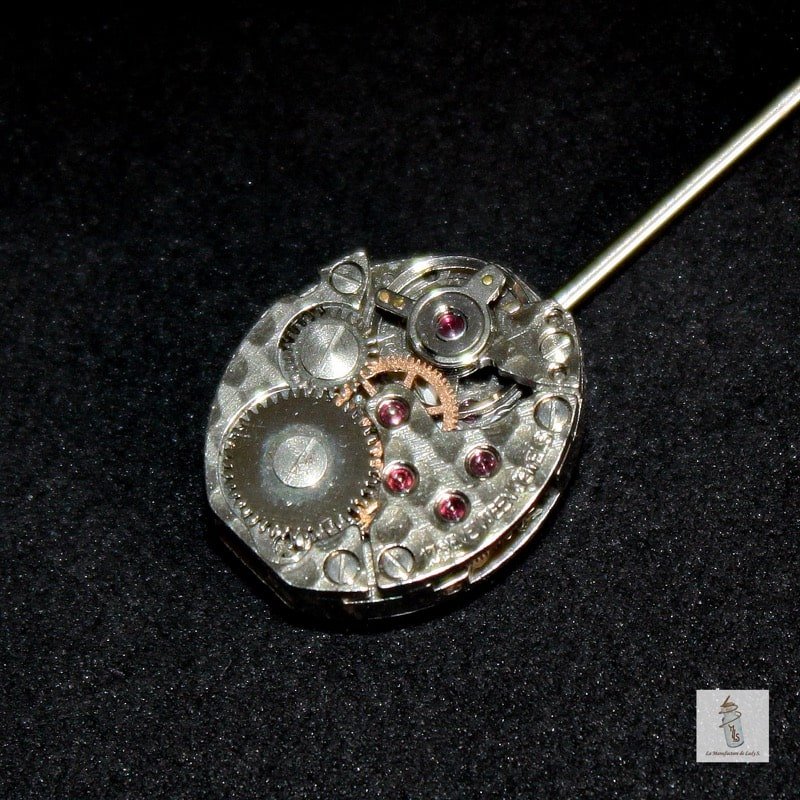 Pour ce bijou Steampunk, j’ai recyclé d'authentiques mécanismes de montres poignet.