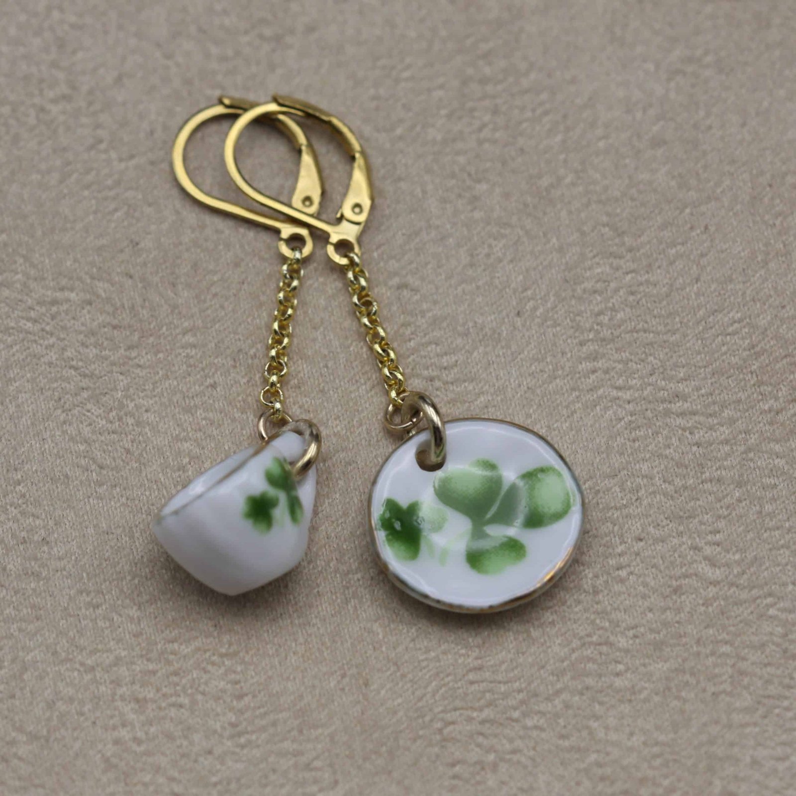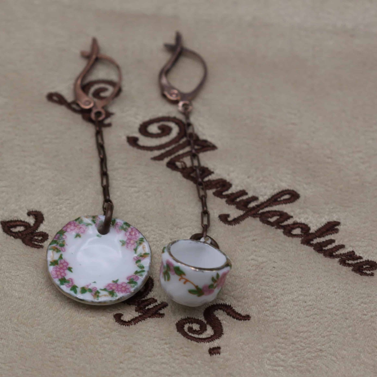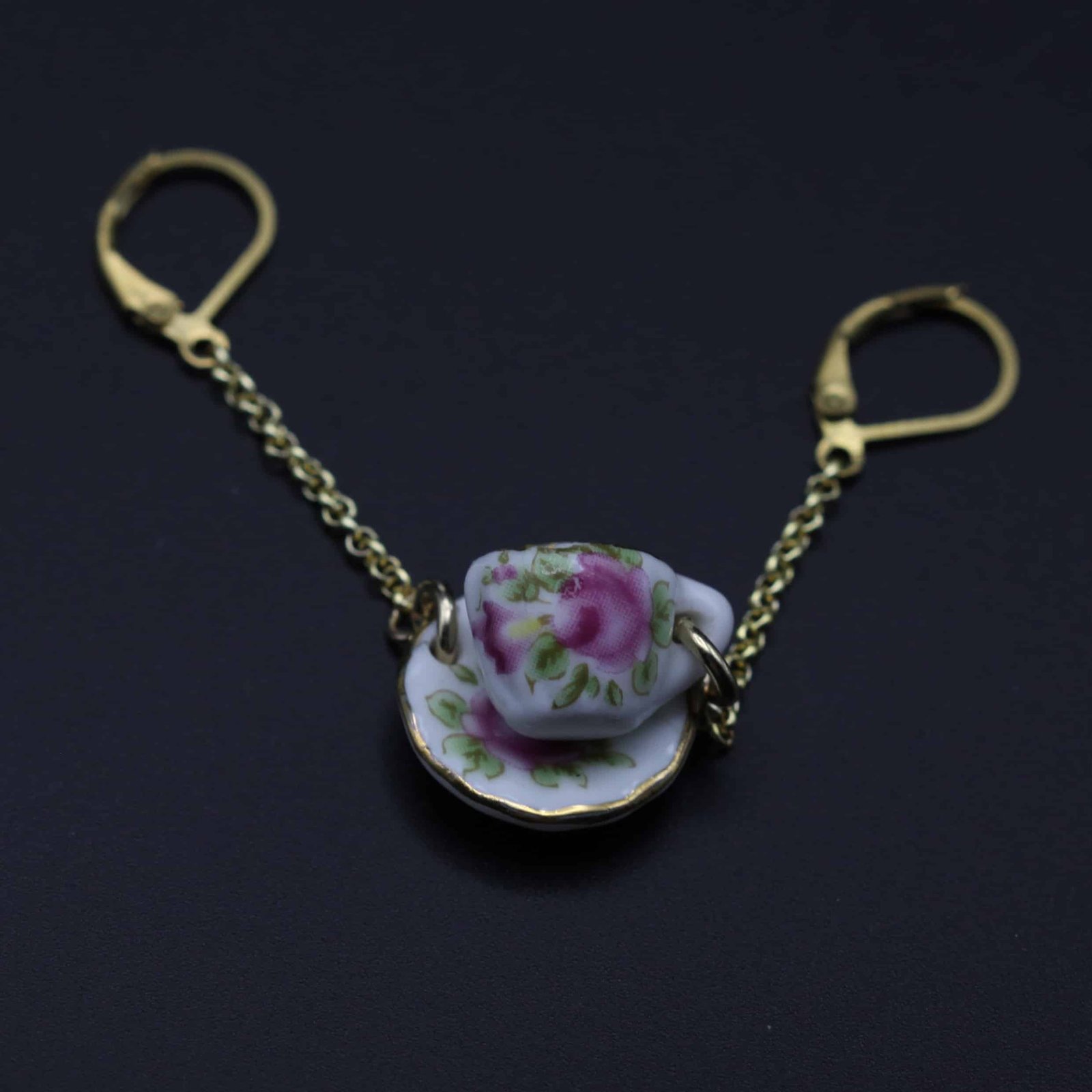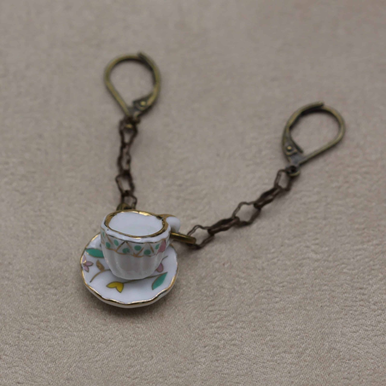 Paire de boucles d’oreille vaisselle l’heure du thé tasse et soucoupe