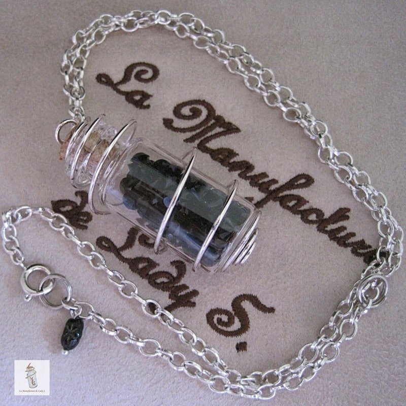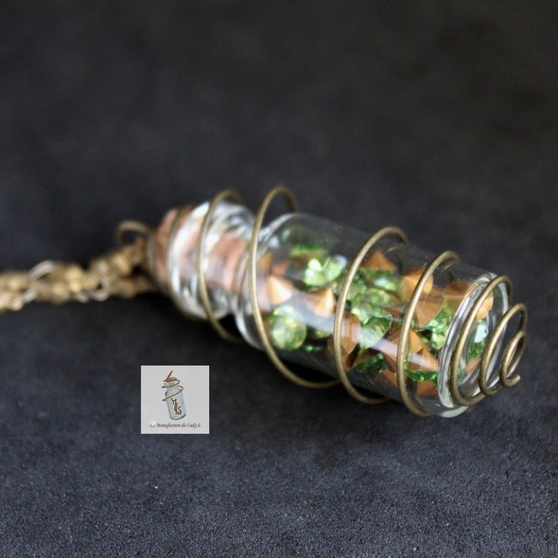 Pendentif / collier Amulette Steampunk Aurélia : fiole en cage aux cristaux de Swarovski
