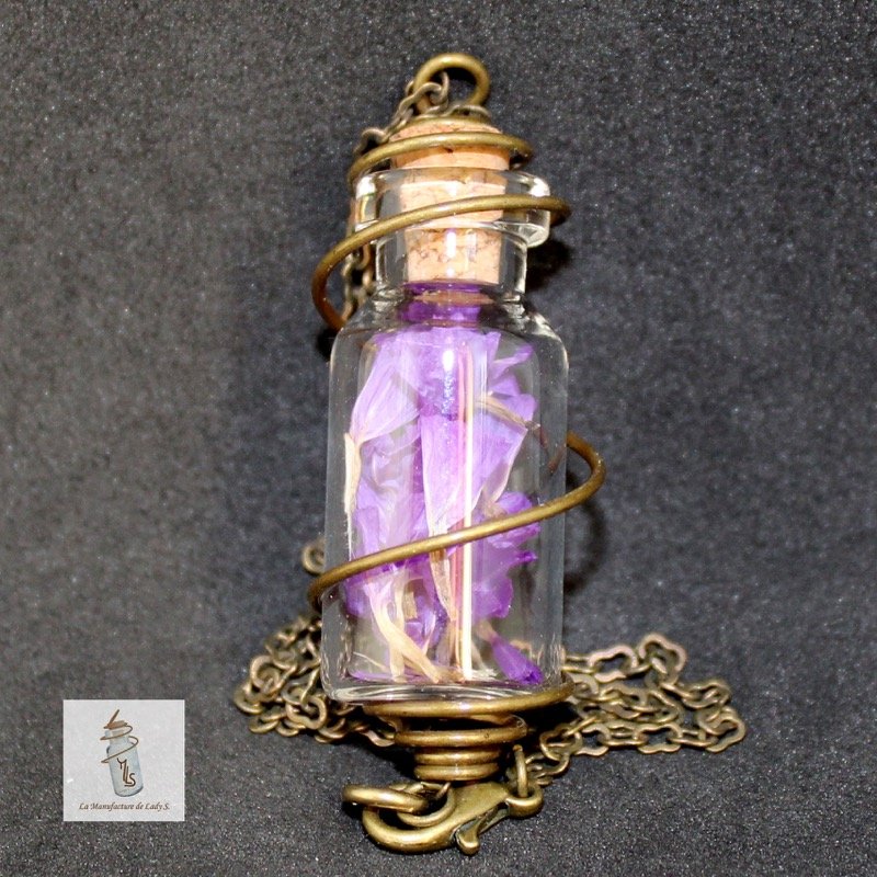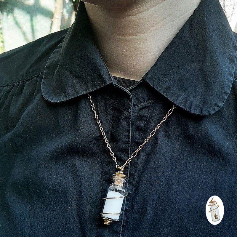 Le collier Steampunk fiole n'aime pas l'humidité, les produits cosmétiques, ni les produits d'entretien.
