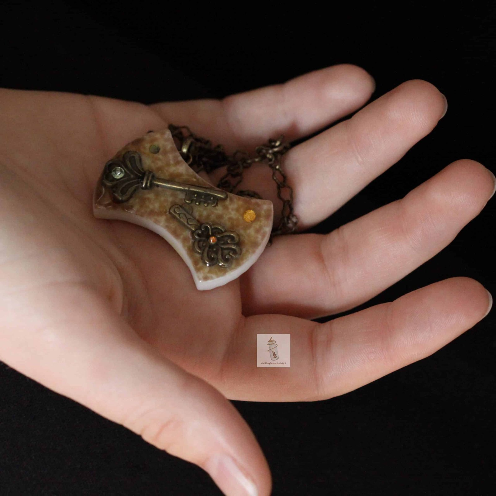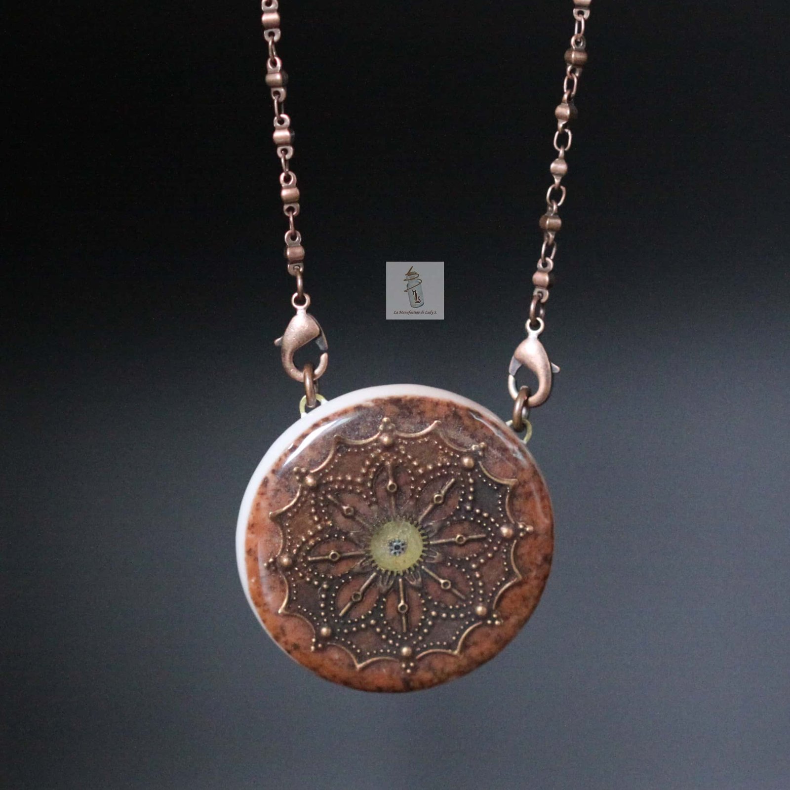 Ce pendentif marron n’apprécie pas l’humidité, les produits cosmétiques ni les produits d’entretien.