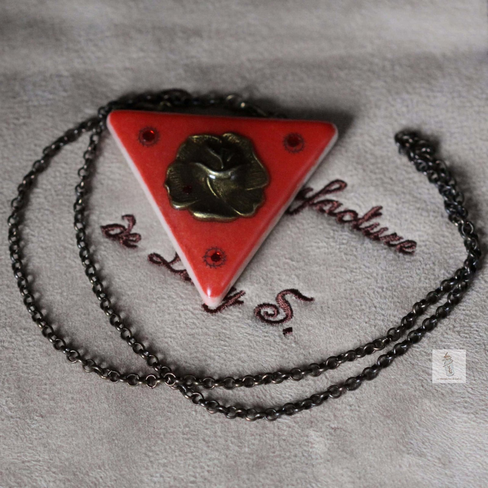 Ces pendentifs sont composés d’un carreau de Briare rouge.